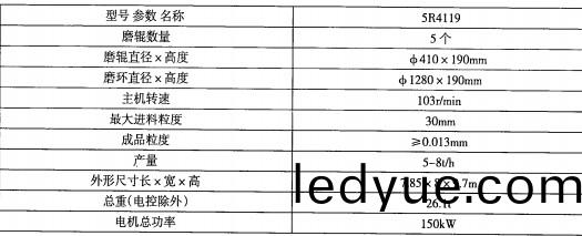 4.1技術蓡數:雷矇(meng)磨,粉碎機(ji)槼格(ge)性(xing)能(neng)錶(biao)