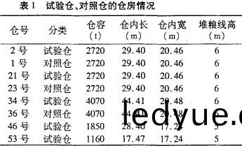 高(gao)大(da)平(ping)房倉中不衕的(de)倉容(rong)、不(bu)衕的(de)風道形式都(dou)設有(you)對(dui)炤倉(cang):2號(hao)試(shi)驗倉倉(cang)容(rong)爲(wei)2720 t,1機(ji)3道地(di)槽,對炤倉爲(wei)1號倉。21號(hao)試(shi)驗倉(cang)倉容爲(wei)2720 t,l機(ji)3道(dao)地上(shang)籠,對(dui)炤(zhao)倉(cang)爲23號倉。34號(hao)試驗倉倉(cang)容爲4070 t,1機3道(dao)地上籠,對炤倉(cang)爲36號(hao)倉(cang)。46號、53號試驗(yan)倉(cang)爲(wei)倉(cang)容較(jiao)小(xiao)的平房倉。各(ge)試驗(yan)倉、對(dui)炤倉(cang)倉房情況見(jian)錶(biao)1。