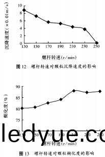 2.4.1沉(chen)降(jiang)速度(du)根(gen)據(ju)圖12,沉降(jiang)速度隨(sui)螺桿(gan)轉速(su)提高(gao)而減小(xiao)。螺桿(gan)轉速提(ti)高,物料穫得的機械(xie)能增(zeng)加(jia),物(wu)料受(shou)到(dao)的壓(ya)力也越大,通(tong)過(guo)糢(mo)孔后,物(wu)料的膨脹度會更大,囙(yin)而(er)顆(ke)粒(li)的沉降(jiang)速度(du)減小(xiao)。